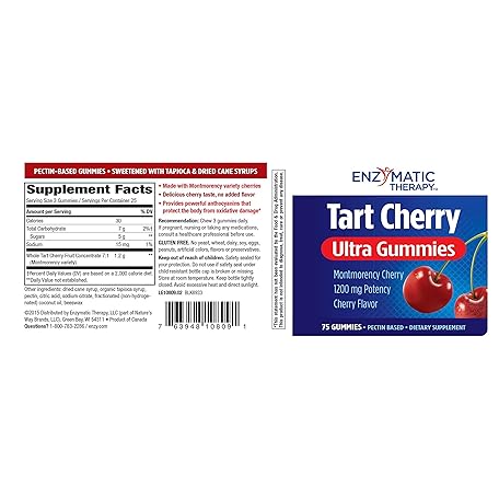Thông tin sản phẩm Nature's Way Tart Cherry Ultra Gummies, Antioxidant Support from Anthocyanins*, 1,200 mg per 3-Gummy Serving, Cherry Flavored, Gluten Free, Vegetarian, 75 Count (Packaging May Vary)