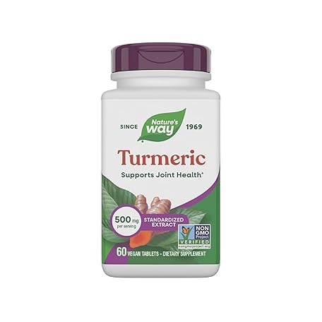 Thông tin sản phẩm Nature's Way Turmeric, Premium Extract, Supports Joint Health*, Standardized to 95% Curcuminoids, 500 mg Serving, Non-GMO Project Verified Supplements, 60 Tablets (Packaging May Vary)