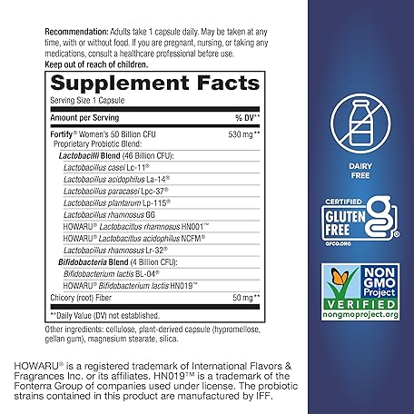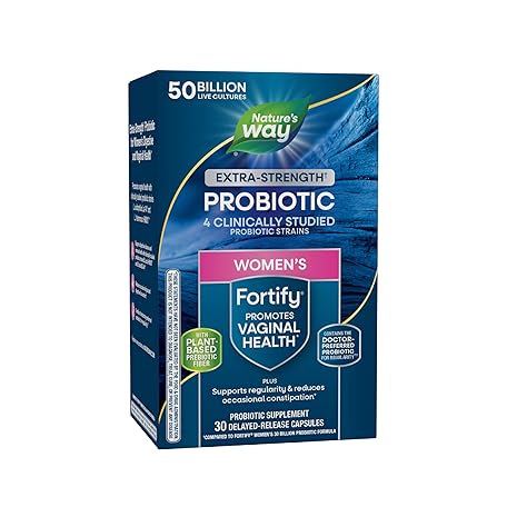 Thông tin sản phẩm Nature's Way Women's Extra Strength(1) Fortify Probiotic 50B Cultures, Supports Digestive, Vaginal & Immune Health*, Plant-Based Prebiotic Fiber, Non-GMO Project Verified, 30 Capsules