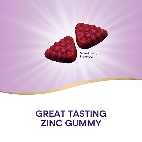 Thông tin sản phẩm Nature's Way Zinc Gummies, Adult & Kids 9+ Immune Support Gummies*, 100% Daily Value per Serving, Mixed Berry Flavor, 120 Chews