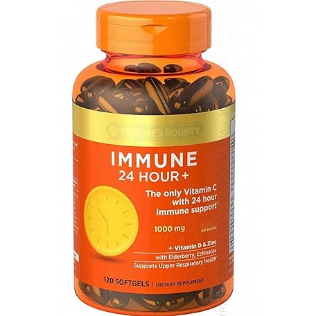 Natures_Bountys_Immune Support 24 Hour+ Vitamin C Supplement with Elderberry, Echinacea, Vitamin D, Zinc, 1000mg, 120 Softgels, Respiratory Support...