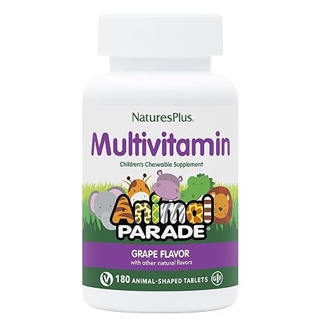 Thông tin sản phẩm NaturesPlus Animal Parade Children's Chewable Multivitamin - Grape Flavor - 180 Animal-Shaped Tablets, Pack of 2 - Promotes Health & Well-Being - Vegetarian, Gluten Free - 180 Total Servings