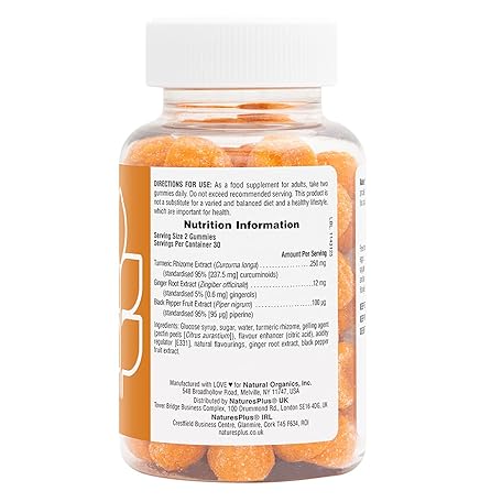 Thông tin sản phẩm NaturesPlus Gummies Turmeric Curcumin - 60 Gummies, Peach - Supports Joint, Digestive & Cardiovascular Health - Vegan, Gluten Free, Non-GMO - 30 Servings