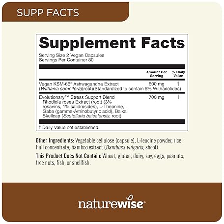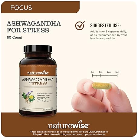 Thông tin sản phẩm NatureWise Ashwagandha for Stress - With KSM-66 Extract, GABA, L-Theanine, Rhodiola Rosea - Herbal Mood & Sleep Support - Vegan, Non-GMO, Gluten-Free - 60 Capsules[1-Month Supply]