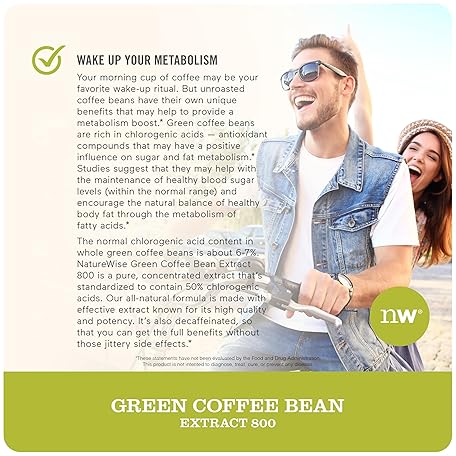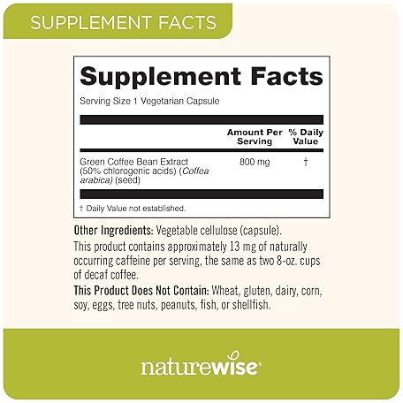 Thông tin sản phẩm NatureWise Green Coffee Bean Extract 800mg - with 50% Chlorogenic Acids - Support for Weight Goals, Energy, and Antioxidants - Vegan, Non-GMO - 60 Capsules[1-Month Supply]