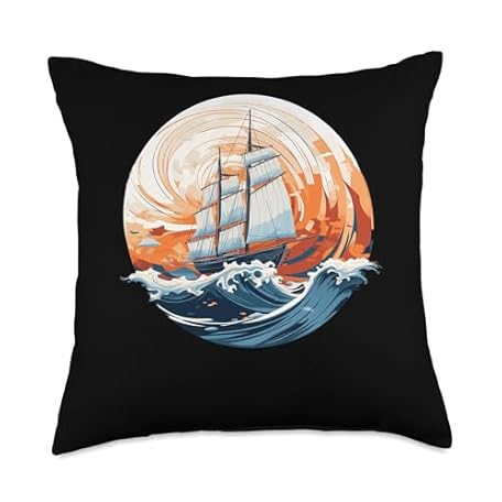 Nautical Adventure Sailboat Sea Voyage Maritime Sailing Ocean Wave Pirate Ship Captain Boating Throw Pillow, 18x18, Multicolor