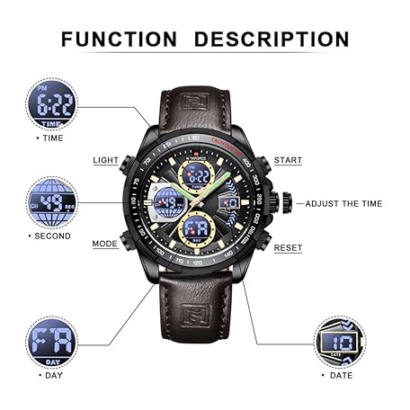 Sản phẩm NAVIFORCE Men's Military Digital Watches Analog Quartz Waterproof Watch Sport Multifunctional Leather Wristwatch đang được bán với giá ưu đãi là $35.1961 tại nước Mỹ.
