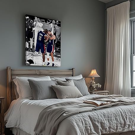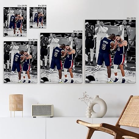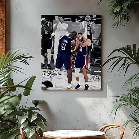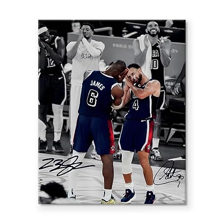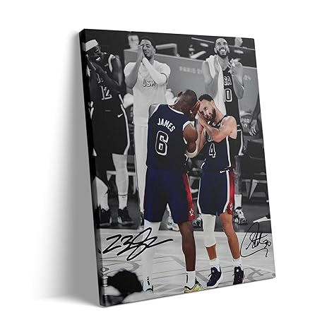 NBA Canvas Wall Art Decor - LeBron James and Stephen Curry Team USA Basketball Print, Iconic Sleep Celebration Poster, Sports Wall Art for Game Room, Office, Gift for Basketball Fans 8X10 inch