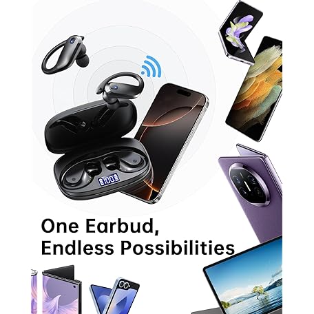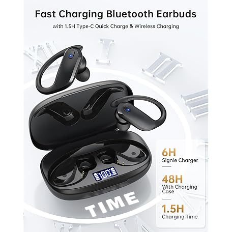 Thông tin sản phẩm NDO Wireless Earbuds Bluetooth 5.3 Headphones Sport,IPX7 Waterproof Sports Earphones with Earhooks,48H Playtime,Lightweight 7.8g,Fast Charging Case,Noise Cancelling Mic for Running Gym Workout-Black
