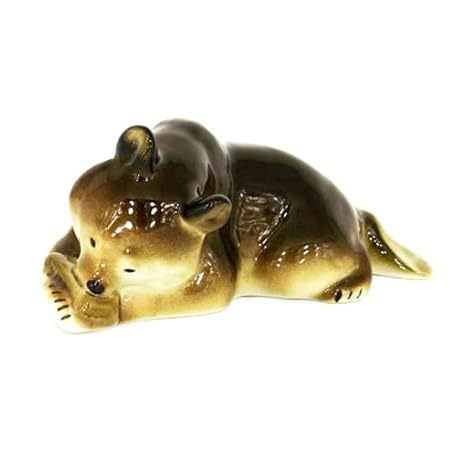 Needzo Lomonosov Porcelain Bear Cub with Honeycomb Figurine, Handmade Animal Statue, Decor for Shelf, Mantel or Desk, 4 Inches