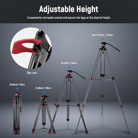 Thông tin sản phẩm NEEWER 79"/200cm Video Tripod, Heavy Duty Aluminum Alloy Camera Tripod Stand with 360° Fluid Drag Head, QR Plate Compatible with Canon Nikon Sony and Other DSLR Camera Camcorder, Load Up to 17.6lb/8kg