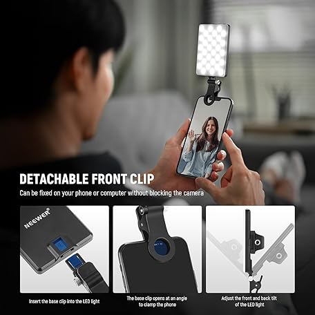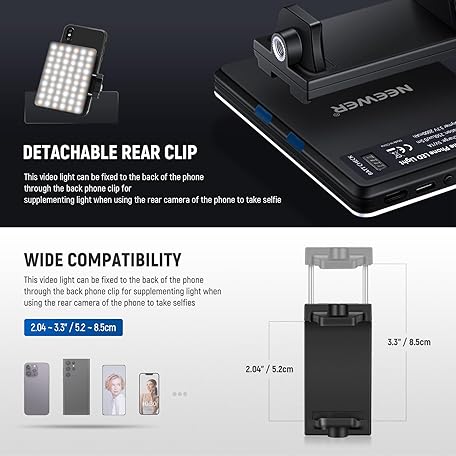 Thông tin sản phẩm NEEWER Basics NL-60AI Selfie Light for Phone with Front & Back Clip, 60 LED 2000mAh Rechargeable CRI95+, 3 Modes, Portable Clip on Fill Lighting for Tablet Computer Laptop Zoom Call TikTok Video