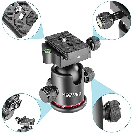 Thông tin sản phẩm Neewer Professional Metal 360 Degree Rotating Panoramic Ball Head with 1/4 inch Quick Release Plate and Bubble Level,up to 17.6pounds/8kilograms,for Tripod,Monopod,Slider,DSLR Camera,Camcorder