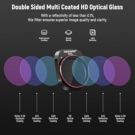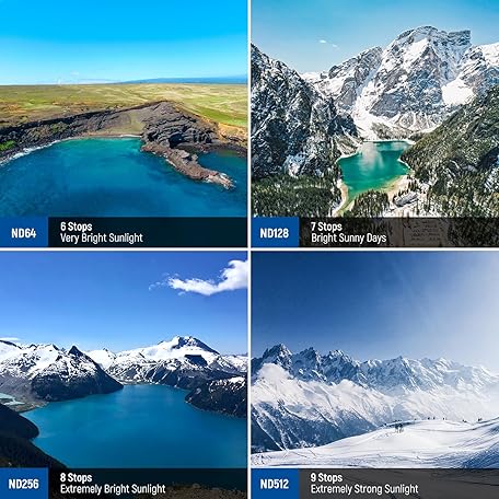 Thông tin sản phẩm NEEWER Variable ND Filter Set Compatible with DJI Mini 4 Pro, 4 Pack ND2-ND32 (1-5 Stops)/ND64-ND512 (6-9 Stops) Limited VND/CPL/UV Filter, Multi Coated HD Optical Glass/Aluminum Frame