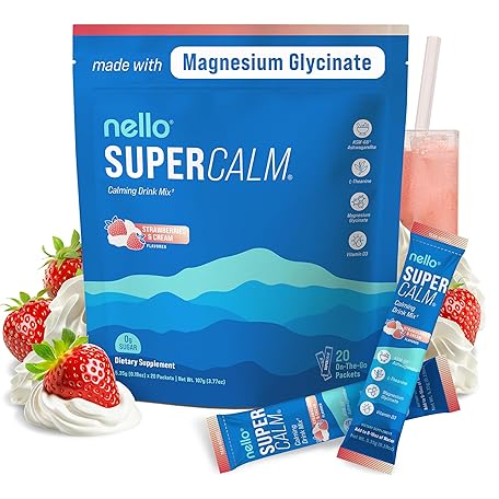 Sản phẩm Nello Supercalm Powdered Drink Mix, Cortisol Reducer*, Sleep Aid Supplement, L Theanine, Ksm-66 Ashwagandha, Magnesium Glycinate, Vitamin D 3, No Sugar, Non GMO, 20 Ct, Strawberries & Cream đang được bán với giá ưu đãi là $43.5455 tại nước Mỹ.