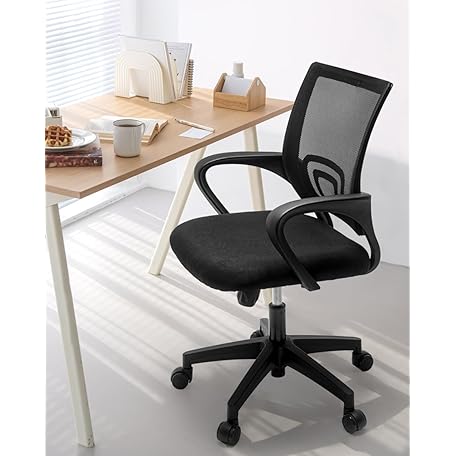 NEO CHAIR Office Desk Computer Chair Ergonomic Mesh Gaming Mid Back Seat with Comfy Lumbar Support Adjustable Height Swivel for Home Task (Black)