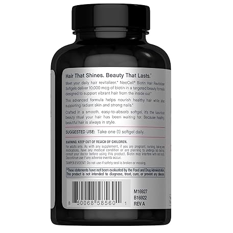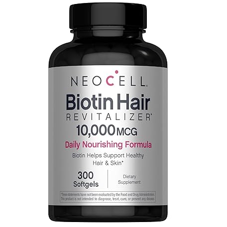 NeoCell Biotin Hair Revitalizer 10000mcg | 300 Softgels | Daily Nourishing Formula | for Women and Men | Hair, Skin, and Nails Supplement