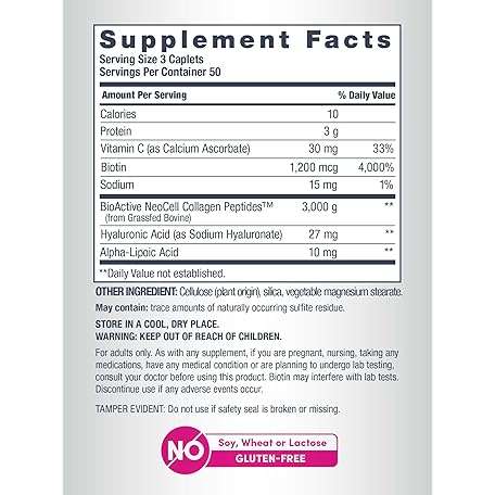 Thông tin sản phẩm NeoCell Collagen Beauty Builder With Hyaluronic Acid and Biotin, Skin, Hair and Nails Supplement, Includes Antioxidants, Tablet, 150 Count, 1 Bottle