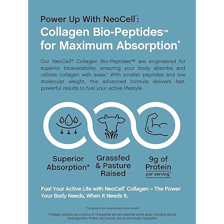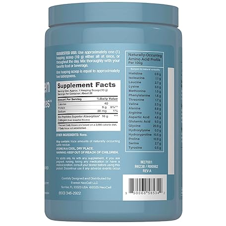 Thông tin sản phẩm NeoCell Collagen Bio-Peptides Powder | 10oz | Super Hair, Skin, and Nails | Superior Absorption | Grassfed Protein Supplement | Advanced with 18 Essential Amino Acids