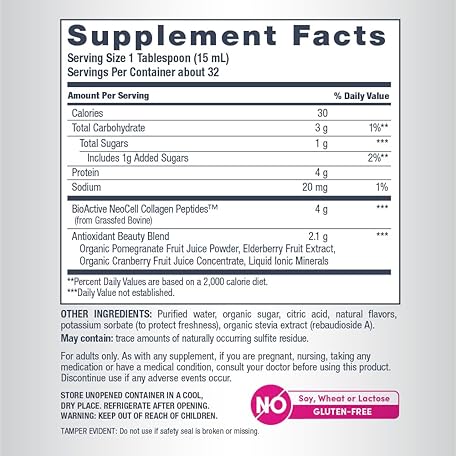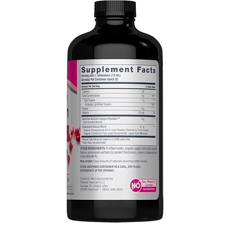 Thông tin sản phẩm NeoCell Liquid Collagen, Skin, Hair, Nails and Joints Supplement, Includes Fruit Juice Concentrates and Green Tea Blend, Pomegranate, 16 oz., 1 Bottle