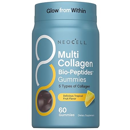 NeoCell Multi Collagen Bio-Peptides Gummies | 60 ct | Tropical Flavor | Type I, II, III, V, X | Advanced BioActive Formula