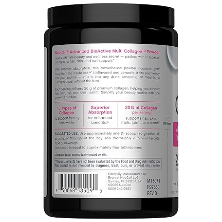 NeoCell Super Multi Collagen Peptides Powder | 9oz | 10 Types of Collagen | Skin, Hair and Nails | Beauty Supplement | Unflavored Powder | For Women and Men