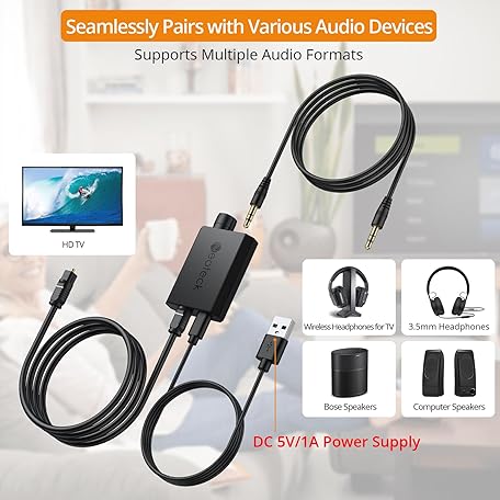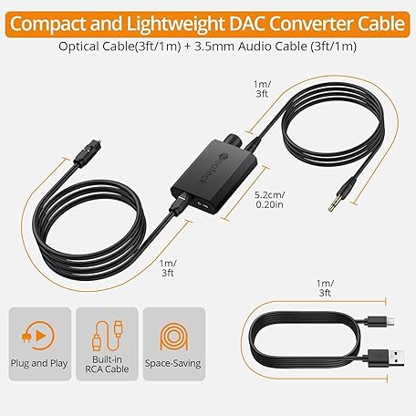 Thông tin sản phẩm Neoteck 192kHz Digital to Analog Converter with Volume Adjustment,Optical to 3.5mm Converter with Built-in Amplifier Chipset DAC Converter Compatible for 3.5mm Headphones, Computer Speaker and etc.
