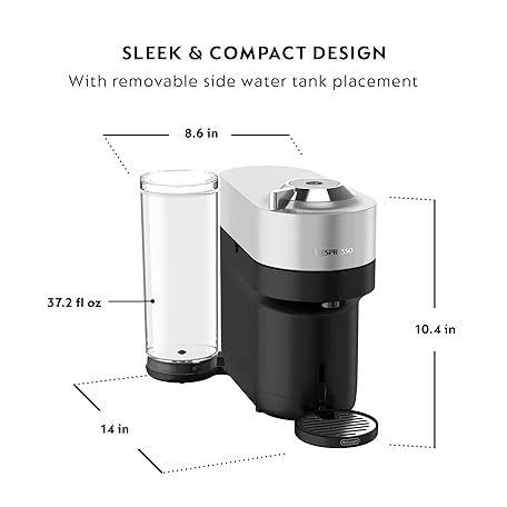 Thông tin sản phẩm Nespresso Vertuo Pop+ Deluxe Coffee and Espresso Machine by De'Longhi, 120 Volts, Silver