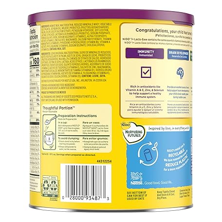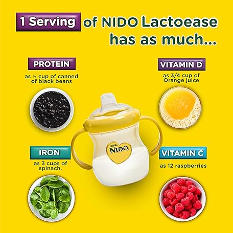 Thông tin sản phẩm Nestlé NIDO Lacto-Ease Toddler Milk Beverage Powder Mix, Reduced Lactose, Toddler Nutritional Drink, Powdered Milk for Toddlers, 22 Servings per Container, 28.2 OZ, Pack of 1