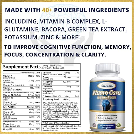 Thông tin sản phẩm Neuro & Brain Care, Extra Strength Brain Supplement for Memory, Focus, & Clarity - Boosts Memory Function, Intelligence Levels & Focus, Premium Brain Health Supplement for Men & Women, 60 Capsules