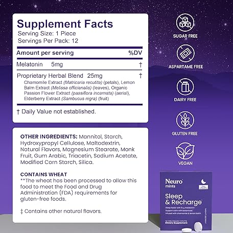 Thông tin sản phẩm Neuro Sleep & Recharge Meltaway Mints - Contains Melatonin 5mg, Chamomile & Elderberry - Travel Aid for Nighttime Relaxation & Healthy Sleep Cycle - Night Berry 72, ct