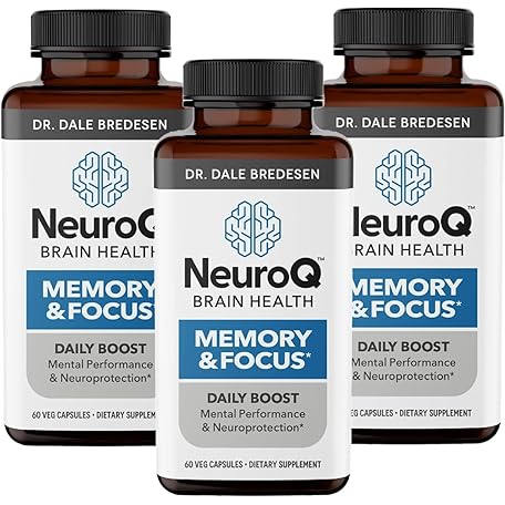 Sản phẩm NeuroQ Memory & Focus - Boosts Cognitive Performance & Brain Function - Neuroprotective Formula by Dr. Dale Bredesen - Gotu Kola Ginkgo Phosphatidylserine & Propolis - 60 Capsules (Pack of 3) đang được bán với giá ưu đãi là $207.0455 tại nước Mỹ.