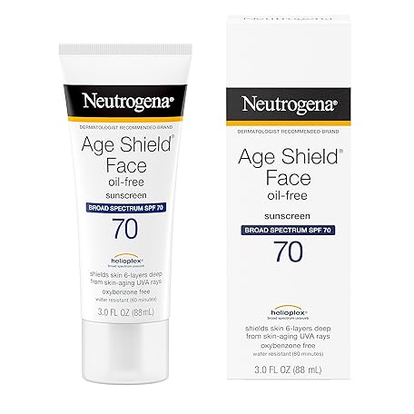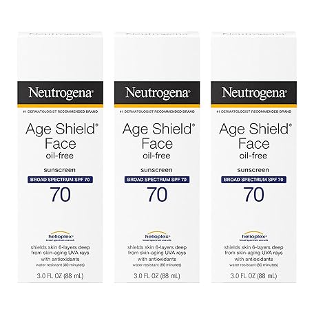 Thông tin sản phẩm Neutrogena Age Shield Face Oil-Free Sunscreen Lotion with Broad Spectrum SPF 70, Non-Comedogenic Moisturizing Sunscreen to Help Prevent Signs of Aging, PABA-Free, 3 fl. oz (Pack of 3)