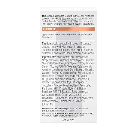 Thông tin sản phẩm Neutrogena Rapid Firming Peptide Eye Cream: Depuffing, Brightening, Hydrating, Fragrance-Free, 0.5 fl. oz