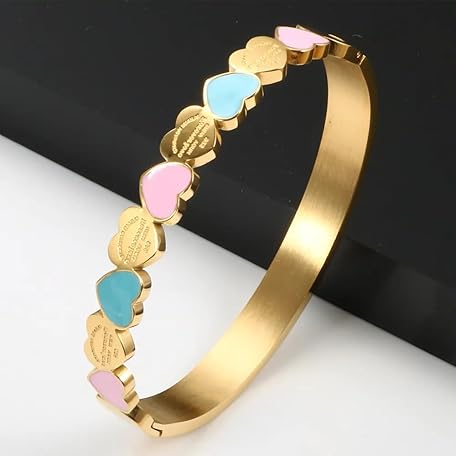 Sản phẩm New 2024 Cute Love Heart Gold Plating Staiess Steel Lucky Cuff Bangles Women Girls Wedding Party Charm Bangles Jewelry Gift Fashion Accessories đang được bán với giá ưu đãi là $27.2391 tại nước Mỹ.