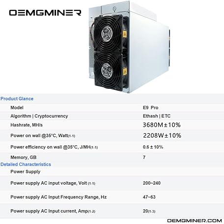 Thương hiệu ACAUTO là cái tên nổi tiếng được rất nhiều khách hàng trên thế giới chọn lựa. Với kiểu dáng đẹp mắt, sang trọng, sản phẩm New Antminer E9 Pro Hashrate 3680M Power 2208W ETC Miner Bulit-in PSU Ready Stock by ACAUTO (Antminer E9 pro-3680M) là sự lựa chọn hoàn hảo nếu bạn đang tìm mua một món cho riêng mình.