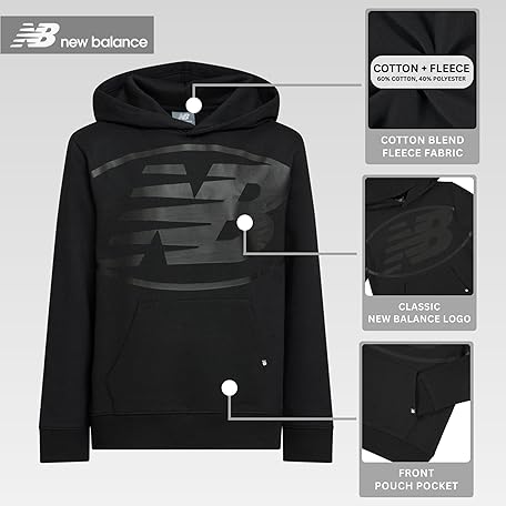 New Balance Boys Graphic Hoodie – Premium Comfy Cotton Blended Fleece Pullover Sweatshirt for Kids, Sizes 4-20