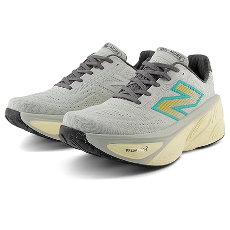 • New Balance Men's Fresh Foam X More V5 Running Shoe, Brighton Grey/Calcium/Cyber Jade, 9.5 XW