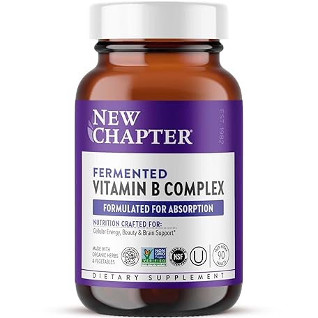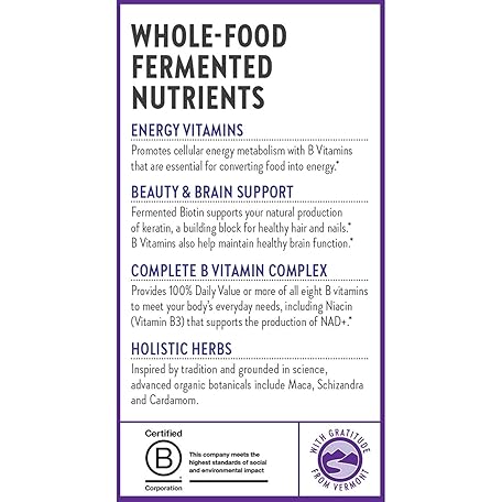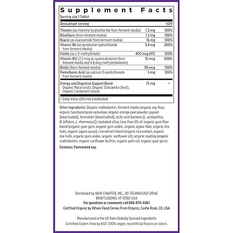 Thông tin sản phẩm New Chapter Vitamin B Complex, Fermented Vitamin B Complex, USDA Organic, ONE Daily for Cellular Energy + Brain + Beauty, 100% Vegan, Gluten-Free - 90 Count