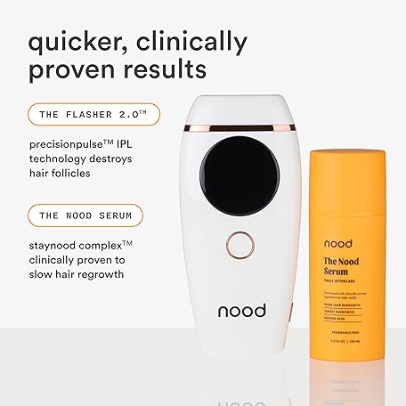 NEW Nood™ Flasher 2.0 + Serum — IPL Laser Hair Removal Device for Women & Men with After Shave to Treat & Prevent Ingrown Hairs, Bumps Slowing Hair Regrowth — Pain-Free IPL Hair Removal — Gloss White