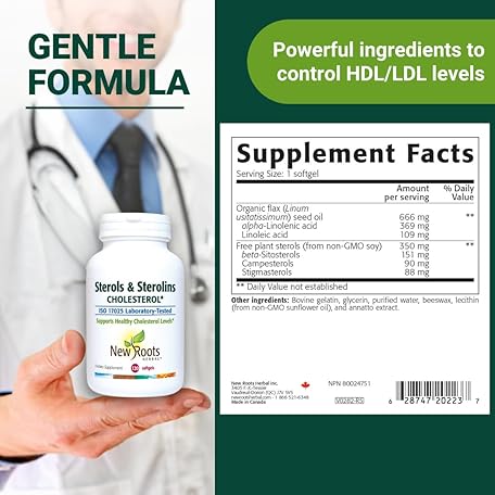Sản phẩm NEW ROOTS HERBAL Plant Sterols and Sterolins Supplement with Organic Flaxseed | Stanols or Phytosterols for Cholesterol Support with Source of Omega-3s (120 Softgels) đang được bán với giá ưu đãi là $27.1301 tại nước Mỹ.
