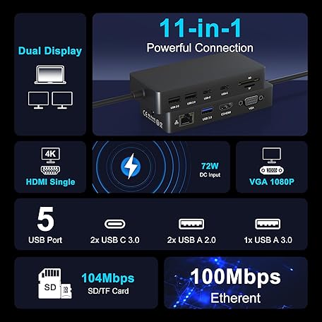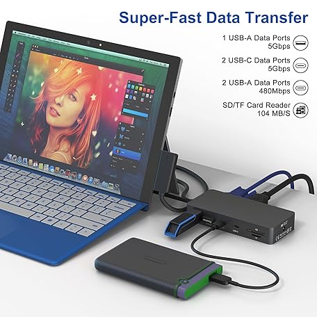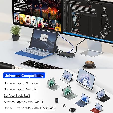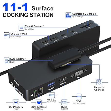Thông tin sản phẩm New Surface Dock Triple Displays 4K@60HZ HDMI+VGA, 11 in 1 Surface Docking Station for Surface Pro 11/10/9/8/X/7/6/5/4/3,Surface Laptop 7/6/5/4/3/2/1,Surface Book Go