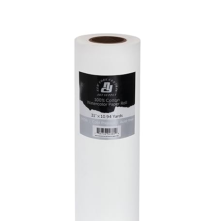 New York Central Large Watercolor Paper Roll for Artists - 140 lb Cold Press - 31" x 10.94 yd - 100% Cotton Bright White Acid-Free Archival Roll of Cold Pressed Watercolor Paper