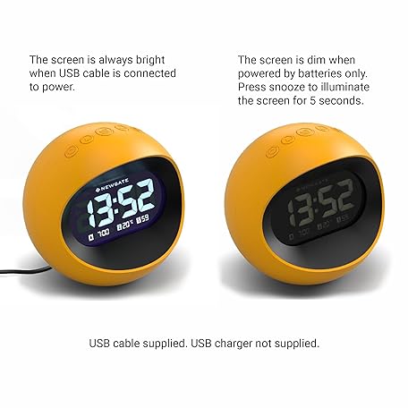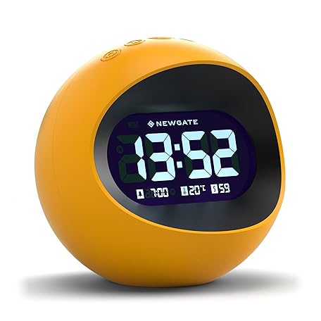 NEWGATE® Centre of The Earth Alarm Clock | Round Retro Digital LCD Clock | Yellow | Ideal for Bedside, Desk or Shelf | Retro Bedroom & Office Accessory