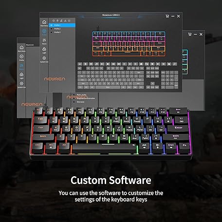Thông tin sản phẩm Newmen GM611 Mechanical Keyboard,Rainbow LED Backlit Gaming Wired Keyboards Compact Mini 61 Keys Portable 60 Percent Mechanical Keyboard with Black Keycaps,for Windows Laptop PC Linear Red Switches