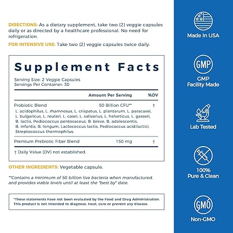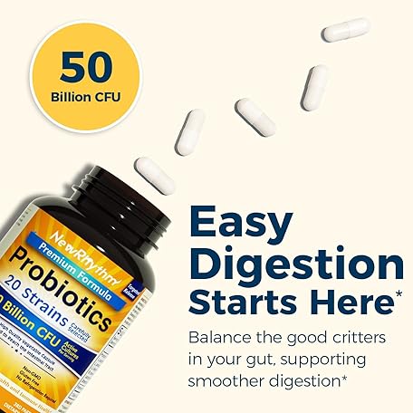 Thông tin sản phẩm NewRhythm Probiotics 50 Billion CFU 20 Strains, 60 Veggie Capsules, Targeted Release Technology, Stomach Acid Resistant, No Need for Refrigeration, Non-GMO, Gluten Free