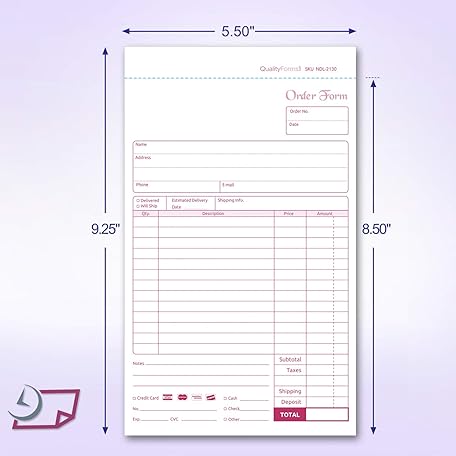 Thông tin sản phẩm NextDayLabels NextDayLabels - NCR Carbonless Order Forms, Bound Wraparound Cover, 50 Sets per Book. (5-1/2 x 8-1/2" - 2 Part)