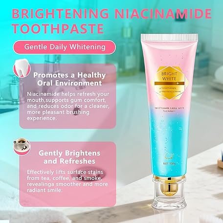 • Niacinamide Whitening Toothpaste for Adults, Teeth Whitening Tooth Paste, Brilliant Smile Niacinamide Toothpaste Whiten (3.53oz)