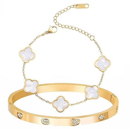 Sản phẩm Niarezom 18K Gold Plated Four Leaf Clover Bracelet Bangle Set for Women Stack Bracelets Bangle for Love Trendy Jewelry Gifts for Women đang được bán với giá ưu đãi là $18.5191 tại nước Mỹ.
