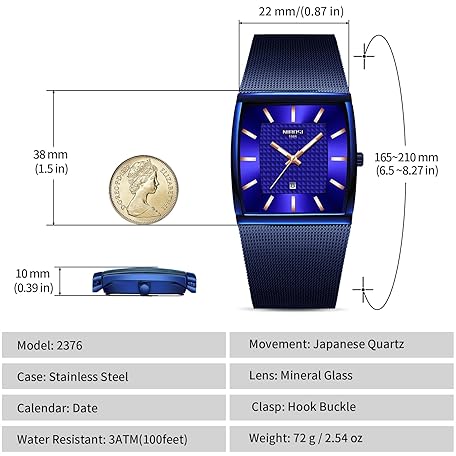 Sản phẩm NIBOSI Men Watches Square Analog Quartz Stainless Steel Watches for Men Mesh Strap Waterproof Business Military Sport Wrist Watch with Date đang được bán với giá ưu đãi là $39.2291 tại nước Mỹ.